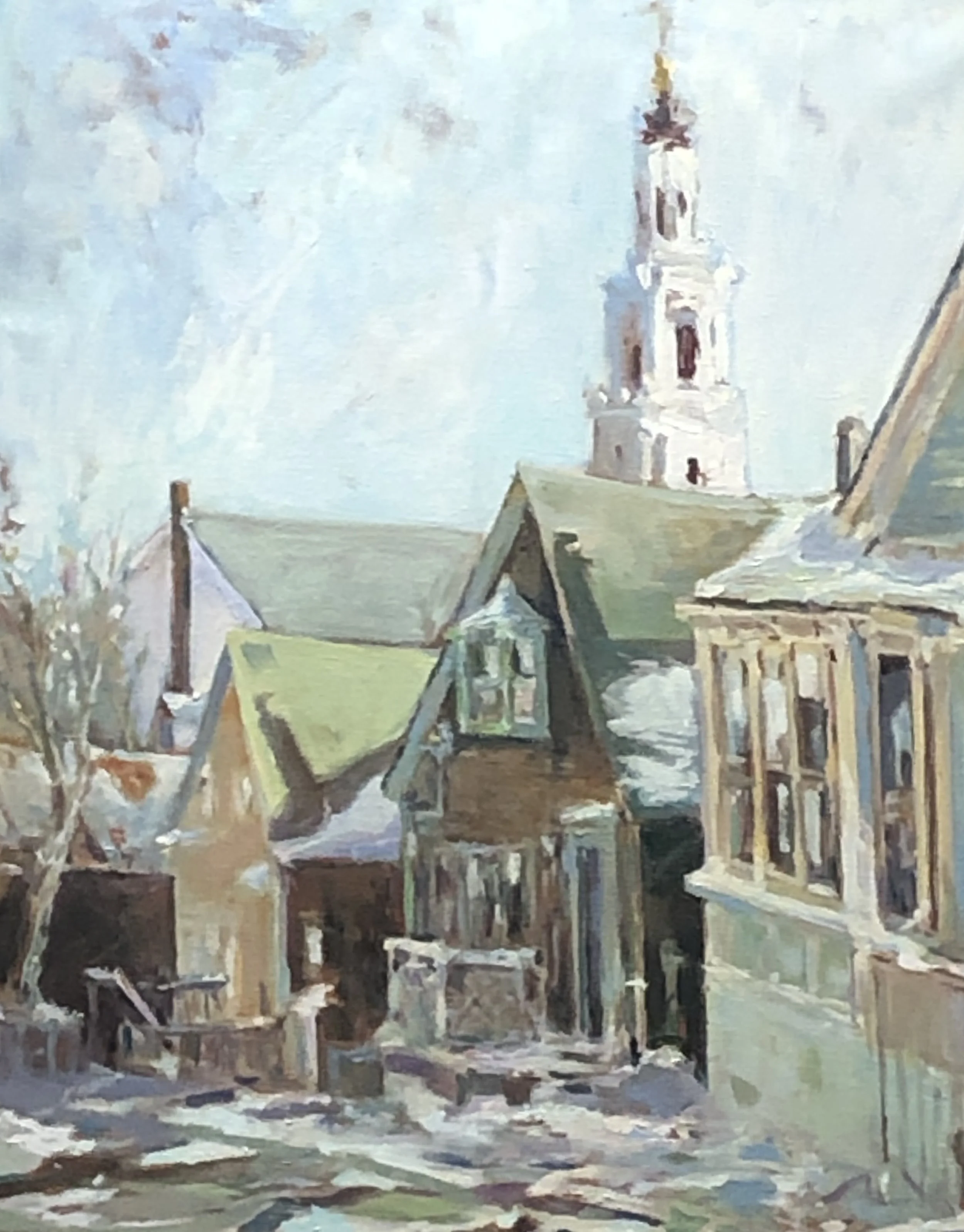 I am an oil painter, and I work en plein air (on site), year-round, in Provincetown, where I live. My work narrates the intersection of a particular time and place.
