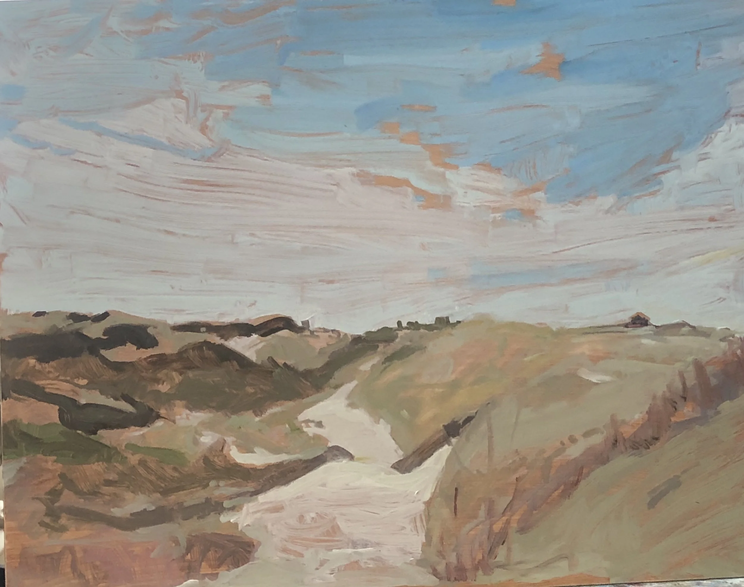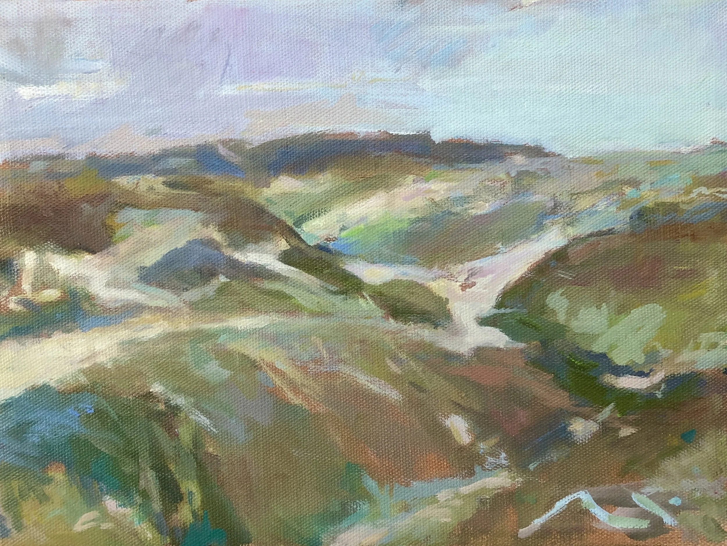Whether I’m painting street scenes throughout the town or landscapes in the dunes of the Cape Cod National Seashore, my approach remains the same: I use layered brushstrokes and thin glazes with impasto on a grounded neutral surface. This technique is ideal for creating images within the short window of time afforded by working en plein air.